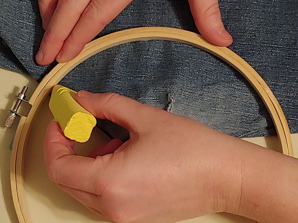 Trim off any excess fabric from the fabric mending tape on the inside of the jeans.
